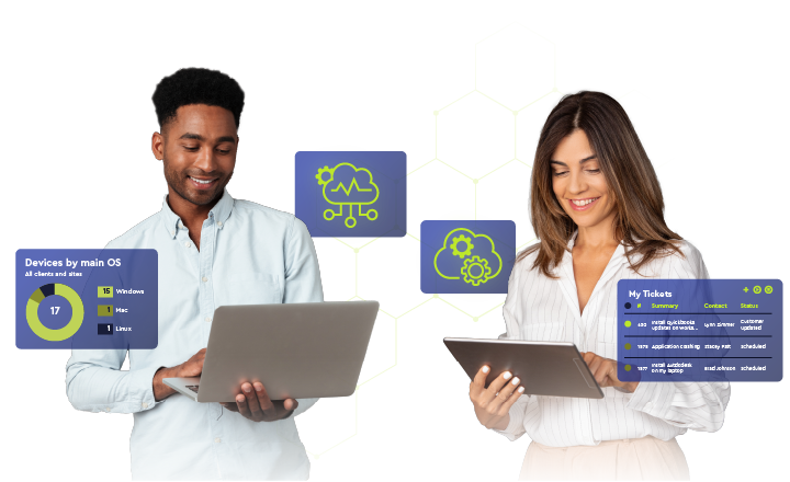 Complete IT management: connected and unified remote monitoring and management, ticketing, quoting, cybersecurity, and more.